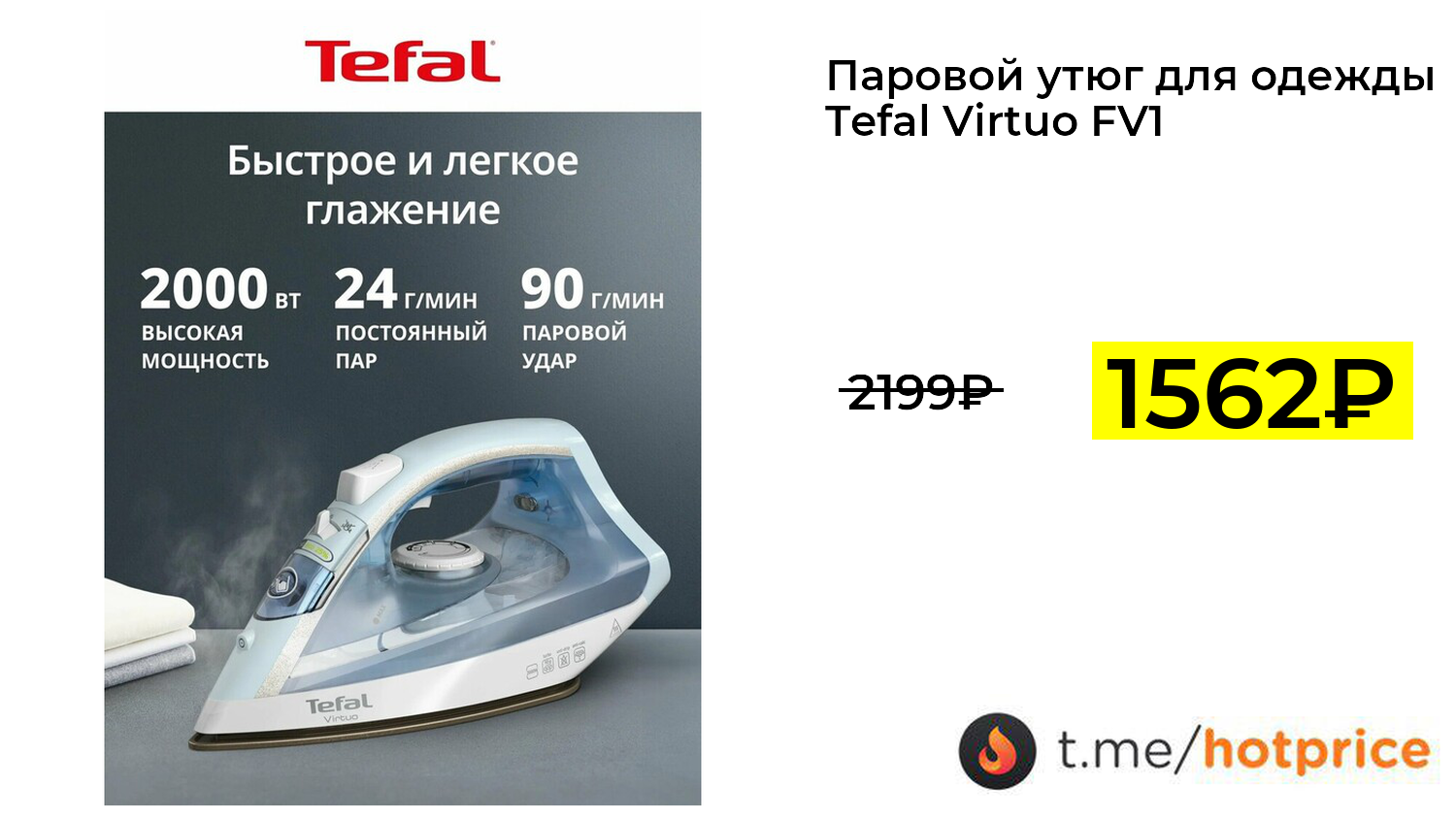 🔹 Паровой утюг для одежды Tefal Virtuo FV1R15F1 за 1562₽ ❗️ (везде: 2199+₽)