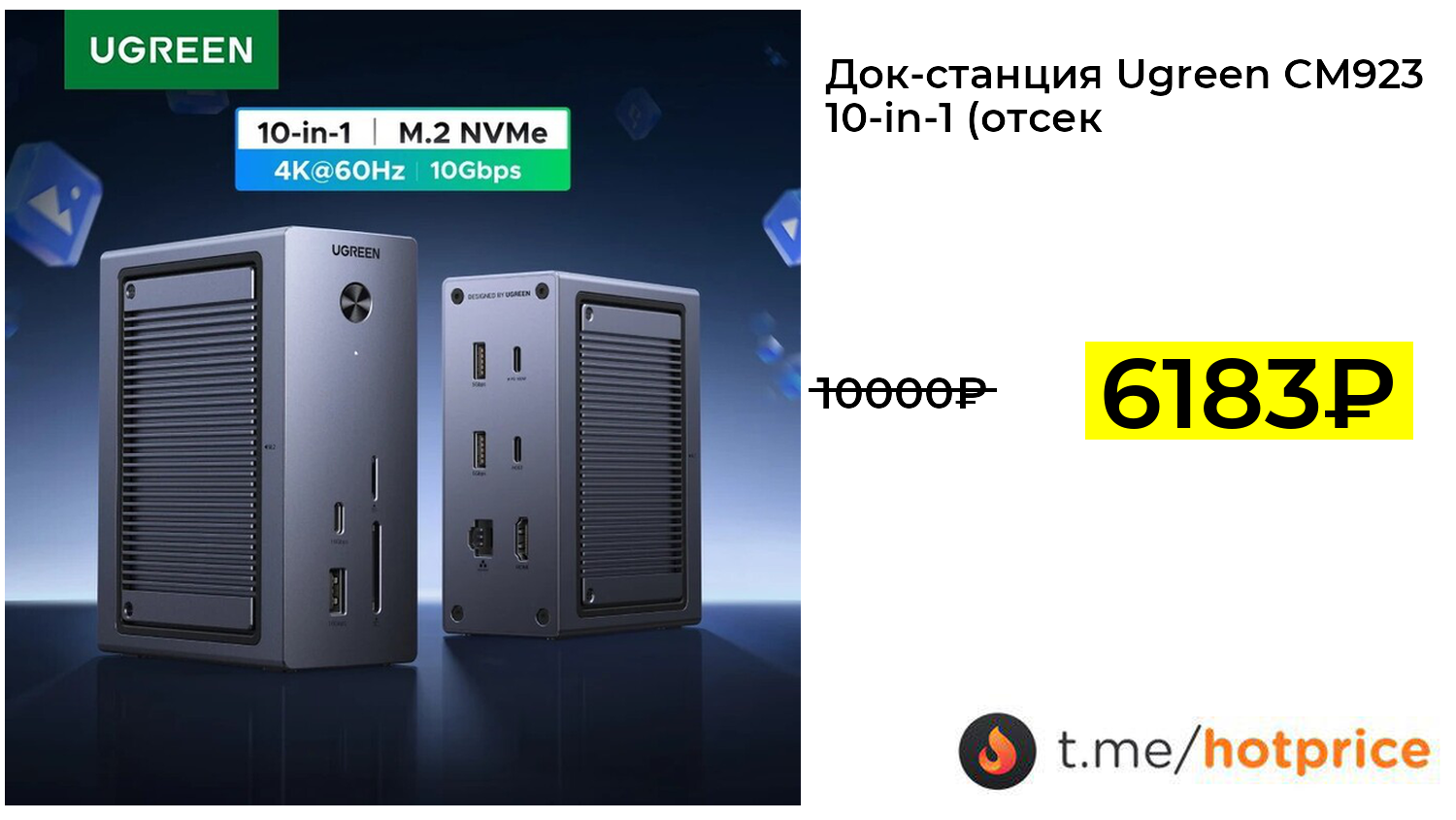 🔹 Док-станция Ugreen CM923 10-in-1 (отсек SSD, 10 Гбит/с, 4K@60Hz, 1000 Мбит/с, SD/TF, PD) за 6183₽ ❗️ (везде: 10000+₽)