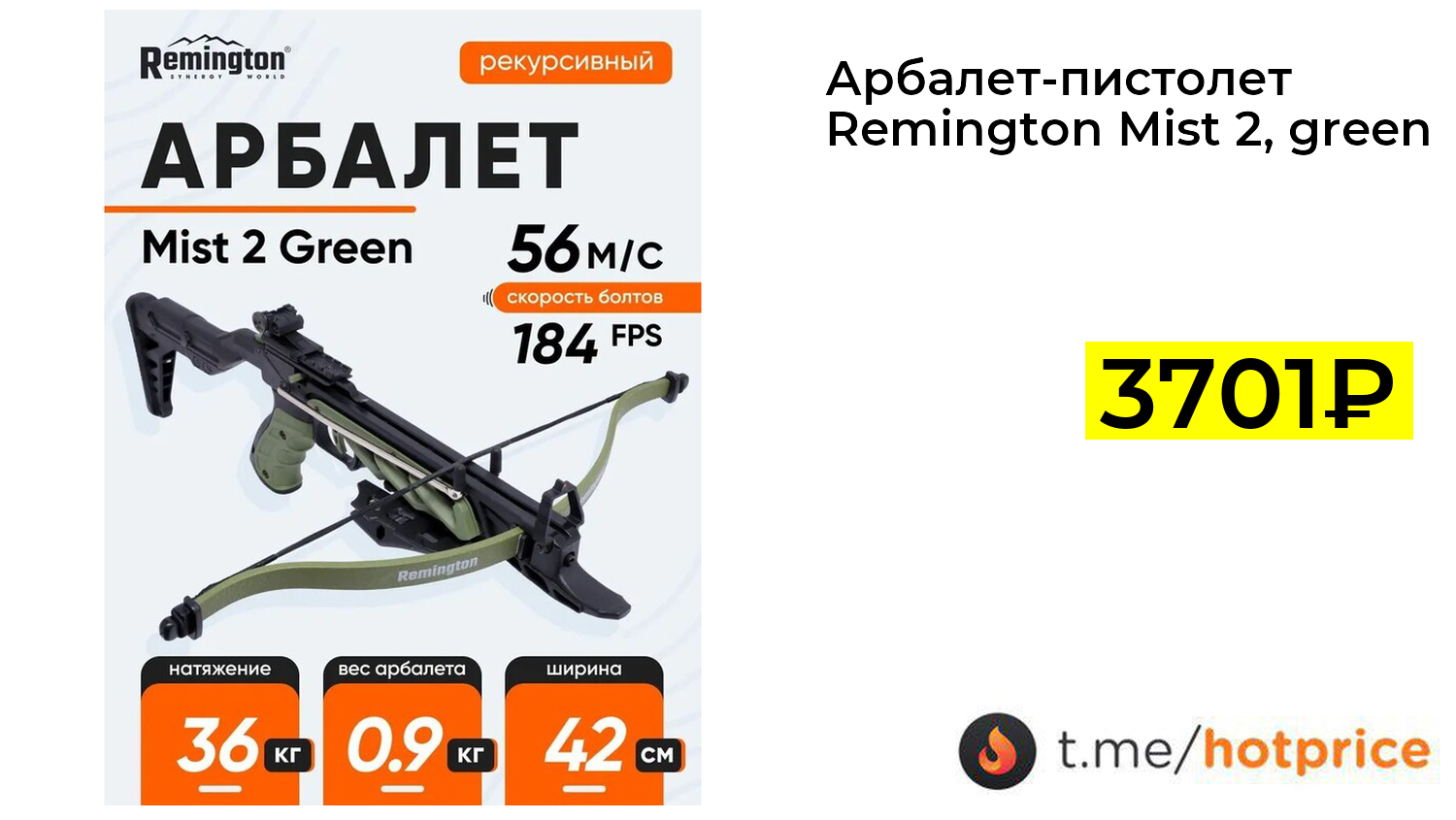🔹 Арбалет-пистолет Remington Mist 2, green R-APMG2 (с картой OZON) за 3701₽ ❗️