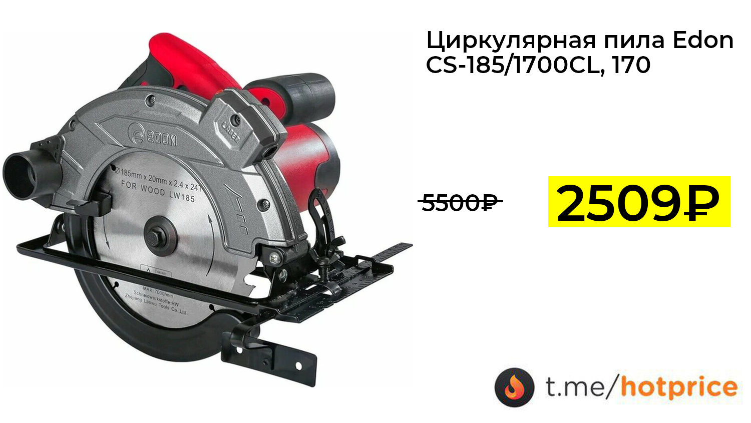 🔹 Циркулярная пила Edon CS-185/1700СL, 1700 Вт, 5500 об./мин., диск 185 мм в комплекте (с ВБ Кошельком и подпиской) за 2509₽ ❗️ (везде: 5500+₽)