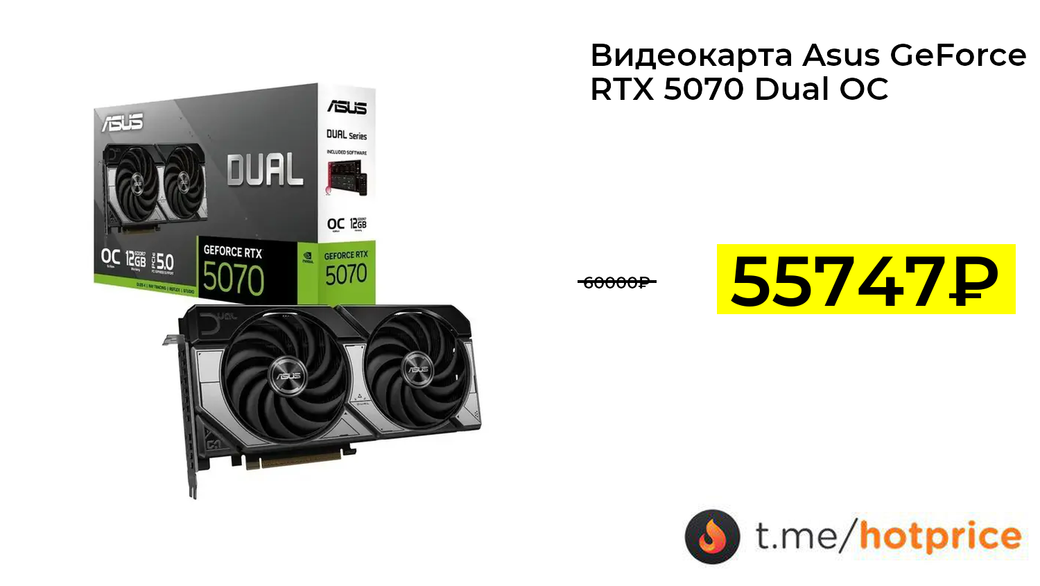 🔹 Видеокарта Asus GeForce RTX 5070 Dual OC (с макс. кошельком ВБ) за 55747₽ ❗️ (везде: 60000+₽)