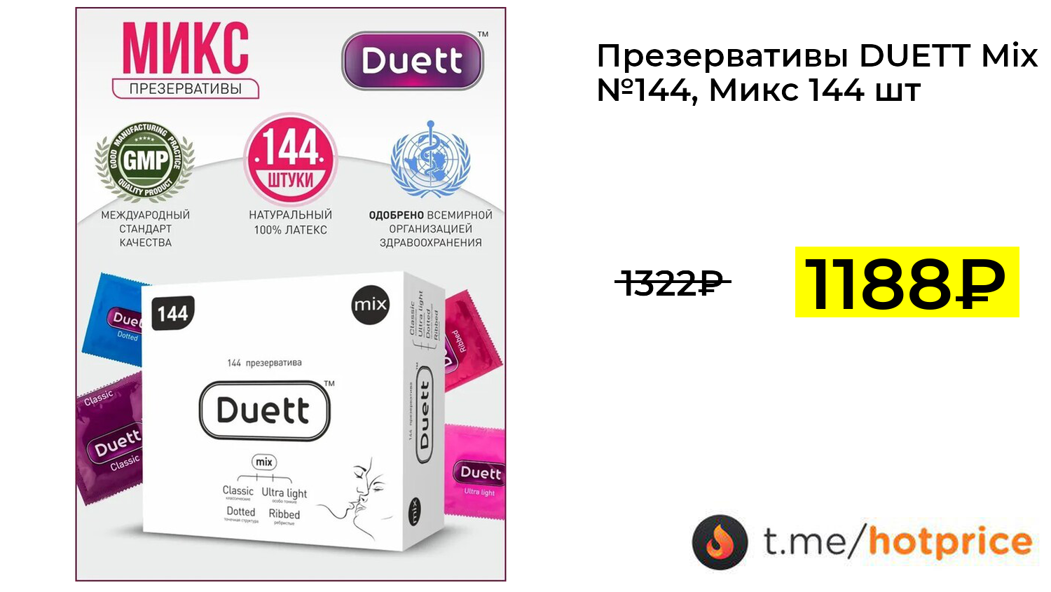 🔹 Презервативы DUETT Mix №144, Микс 144 шт. (с озон-картой) за 1188₽ ❗️ (везде: 1322+₽)