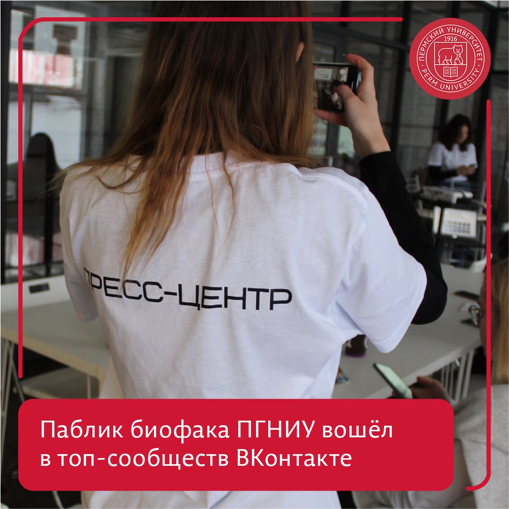 СМИ биологического факультета ПГНИУ приняло участие во Всероссийском конкурсе «Вместе медиа». Паблик факультета попал в шорт-лист специальной сквозной номинации «Лучшее сообщество СМИ ВКонтакте».