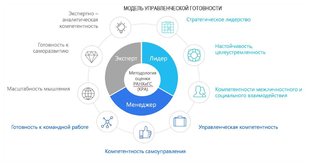 Стратегическое лидерство лежит в основе лидерской готовности. Управленческая компетентность в основе менеджерской составляющей готовности. А экспертно-аналитическая компетентность в основе экспертной составляющей управленческой готовности.