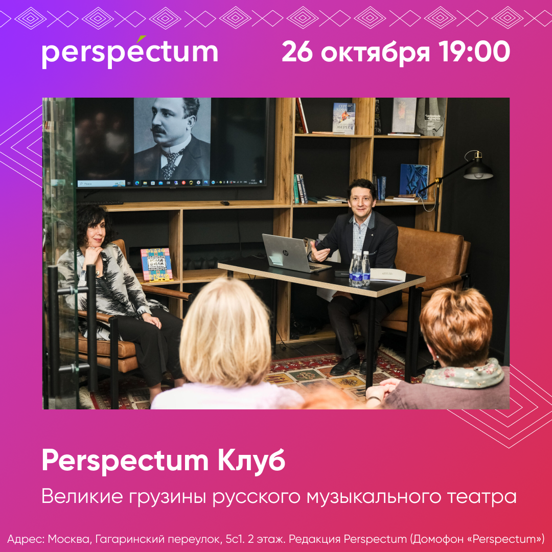 🇬🇪 На своей первой лекции в клубе Perspectum театровед Ярослав Седов рассказывал о грузинских актерах и режиссерах, составивших славу русского драматического театра. Темой новой встречи, которая пройдет 26 октября, в четверг, в 19:00 в уютном пространстве Perspectum в Гагаринском переулке, 5с1 (2 этаж, домофон Perspectum), вновь станут уроженцы Сакартвело, оставившие яркий след в истории нашего театра – на этот раз музыкального. Зураб Соткилава, Симон Вирсаладзе, Вахтанг Чабукиани, а кто еще? Об этом и поговорим!