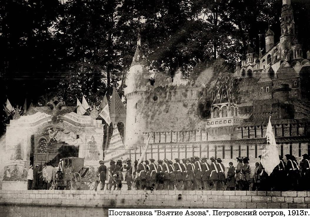 А. Алексеев справедливо указывает на то, что без его разрешения была полностью воспроизведена его пьеса, в его же постановке. Фирма оговаривается тем, что она, собственно, имела в виду снять гулянье на Петровском острове, а инсценировка «Памяти Азова» попала якобы в картину только случайно.