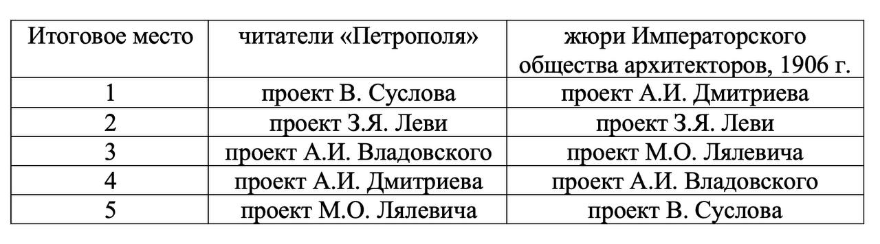 Мы решили провести своё голосование на лучший проект здания Государственной думы на Марсовом поле. Предлагаем вам, дорогие читатели, определить лучший проект на ваш взгляд. Мы заретушировали итоговое место каждого проекта. Затем мы подведём итоге и сверимся насколько предпочтения читателей «Петрополя» совпали с мнением жюри из именитых архитекторов Императорского общества.
