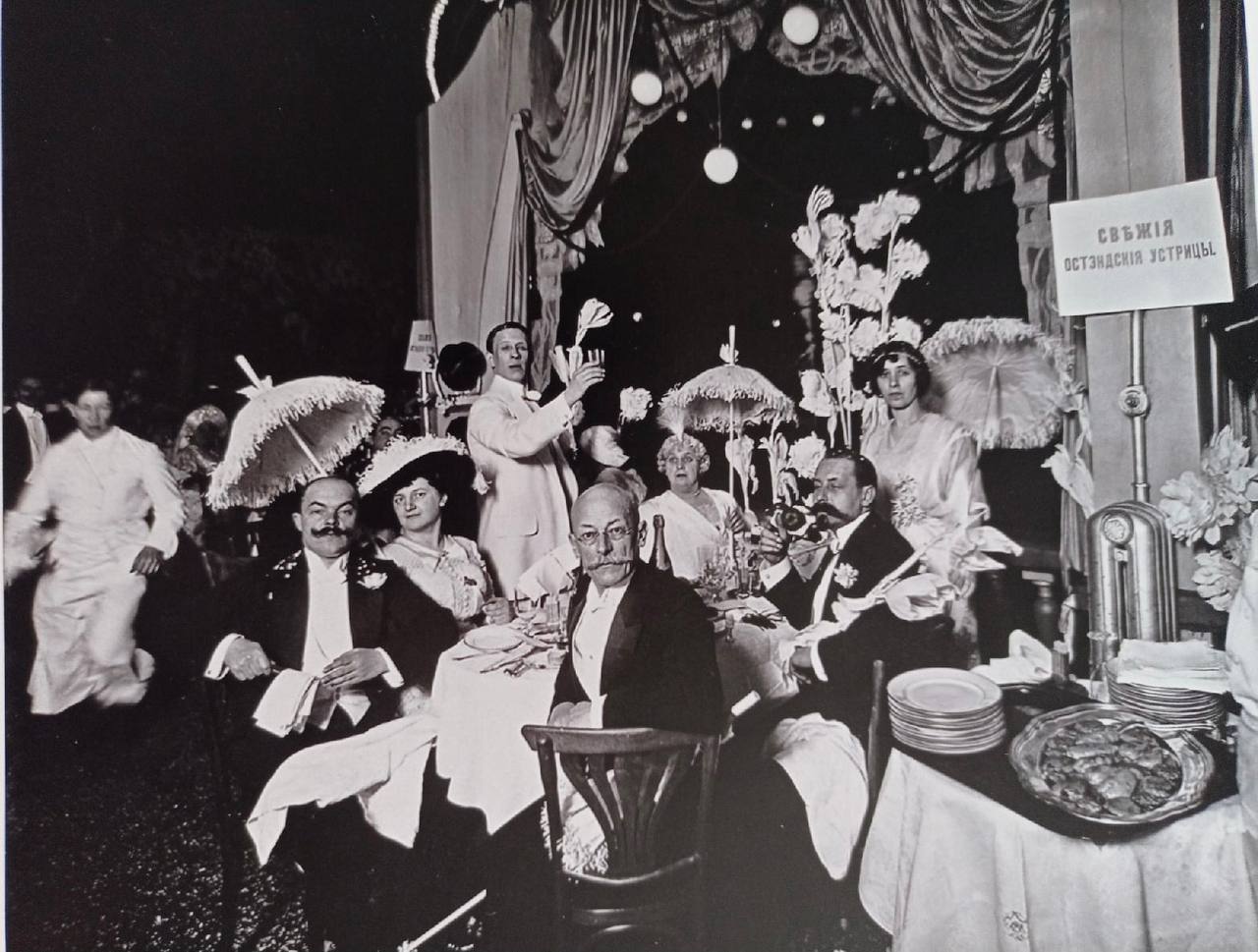 На фото: участники Белого бала на скейтинг-ринке на Марсовом поле, 1913 г. Из угощений — пока ещё остендские устрицы.