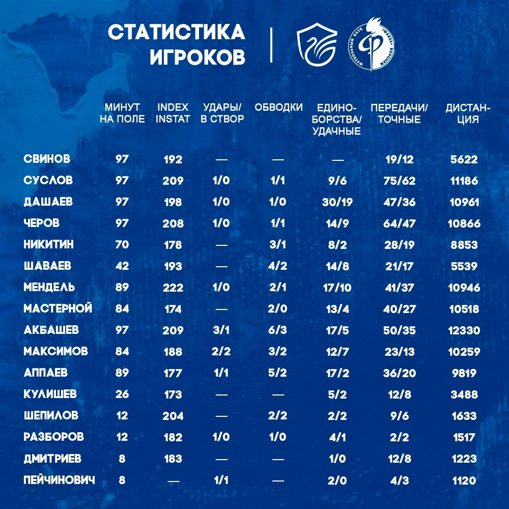 Индивидуальная статистика наших игроков в матче против ФК «Олимп-Долгопрудный» 📊