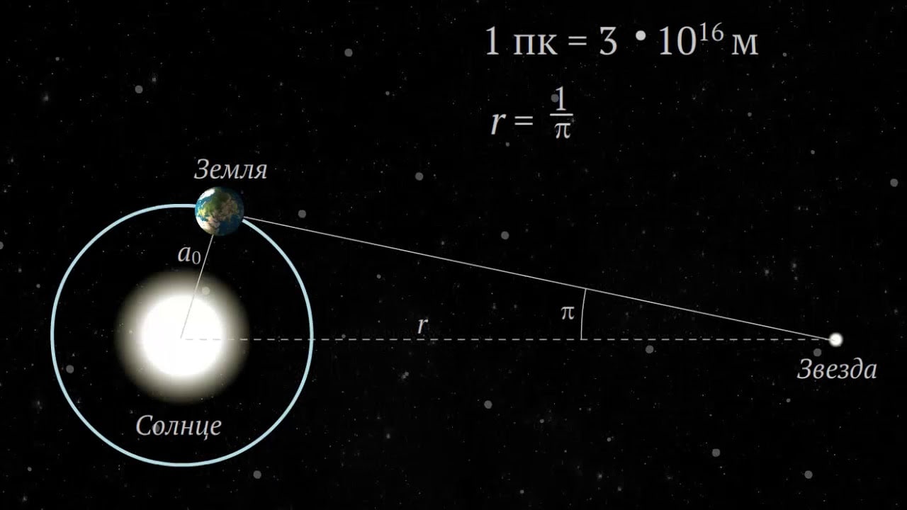 Так вот: в изначальном определении парсек - это расстояние до объекта, который за год меняет своё положение на небе на 1 угловую секунду. Это расстояние равно примерно 30,86 триллиона километров, или около 3,26 светового года. Сейчас от всех этих градусов дуги и радиусов земной орбиты "отвязались", точно выразив парсек в метрах, километрах и световых годах.