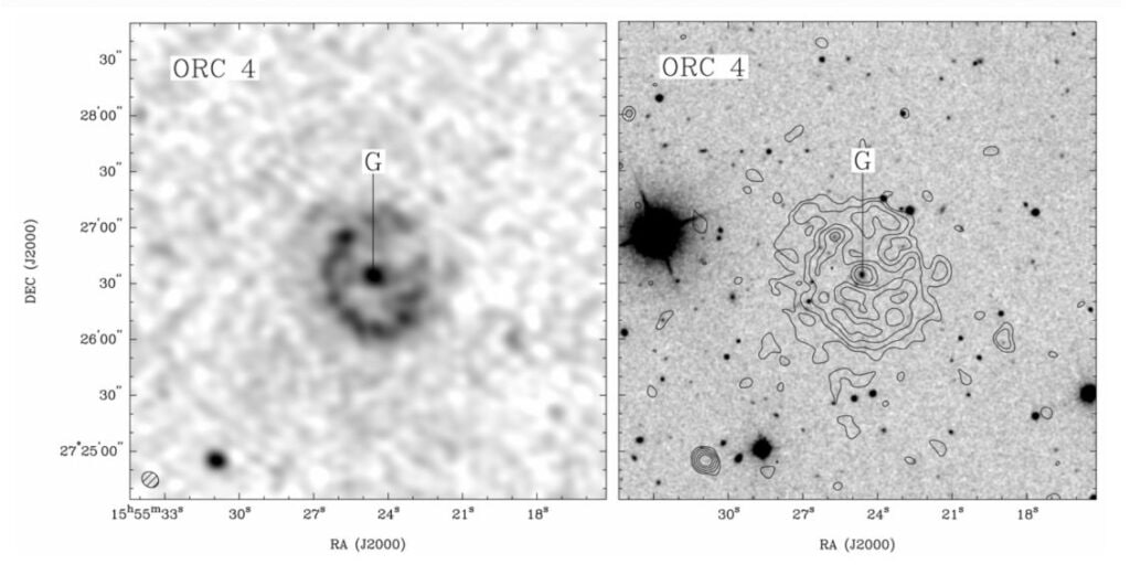 Центры двух обнаруженных ОРКов совпадают с центрами удалённых галактик, однако в центре двух остальных, похоже, нет вообще ничего - или, по крайней мере, ничего, что мы могли бы увидеть. То есть, мы пока не можем утверждать, что ОРКи как-то связаны с другими галактиками - вполне возможно, что они всё-таки являются результатом неких внутригалактических эффектов; но каких именно?