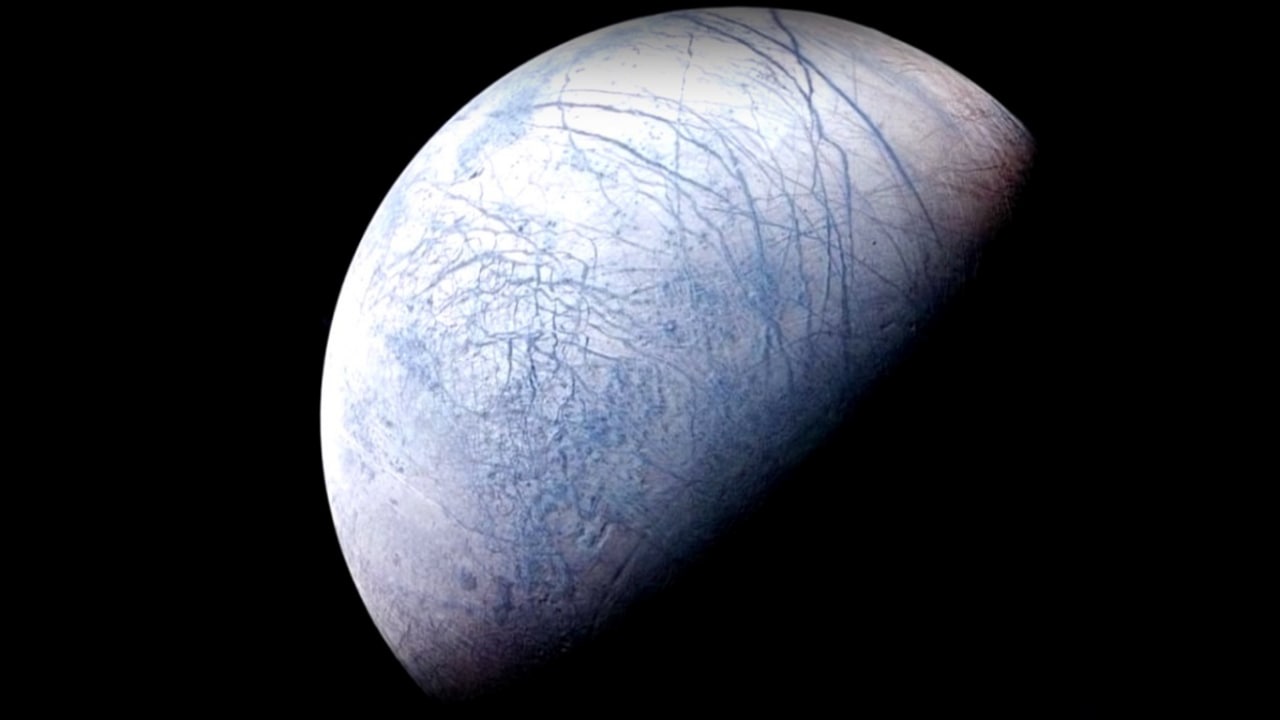 Это Европа - шестой спутник Юпитера, и одна из наиболее перспективных в Солнечной системе планет с точки зрения шансов обнаружить там внеземную жизнь.
