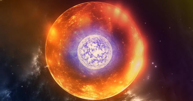 Это рисунок одного из, пожалуй, самых странных объектов во Вселенной - "звезды матрёшки", или объекта Ландау-Торна-Житков: красного гиганта, ядром которого является нейтронная звезда.