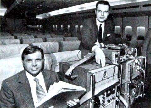 На фото Хафеле, Китинг и комплект цезиевых часов, для которого купили отдельный билет на имя Mr. Clock.