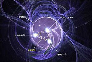 На картинке - схематическое устройство протона: три кварта, окружённые глюонным облаком.