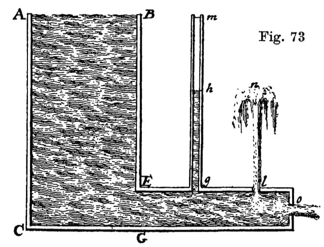 На этом канале я время от времени буду выкладывать картинки и видео эффектов, порождаемых законом Бернулли. А здесь выложу картинку из той самой "Гидродинамики" Бернулли, с которой всё началось: на ней видно, что давление текущей жидкости в горизонтальной трубе заметно меньше давления неподвижной жидкости в основном сосуде.