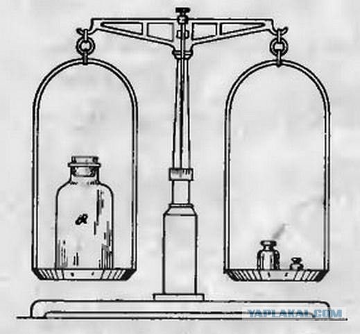 Но по третьему закону Ньютона ровно такая же, но направленная в обратном направлении сила действует и на сам воздух банки. А воздух банки, по закону Паскаля, передаёт это действие самой банке. То есть, летает муха или сидит, вес системы на весах всегда строго равен весу банки + вес воздуха + вес мухи.