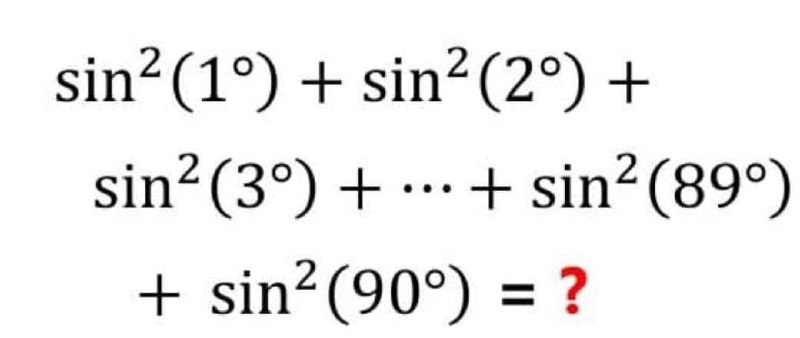 Без пары у нас остаётся только два члена ряда: 45° и 90°. К счастью, значения их синусов нам хорошо известны: это, соответственно √2/2, что при возведении в квадрат даёт нам 1/2, и 1, которая при возведении в квадрат остаётся 1. Прибавляем эти числа к 44, получившимся от суммирования остальных членов ряда, получаем 45,5 - именно так звучит правильный ответ на вопрос задачи.