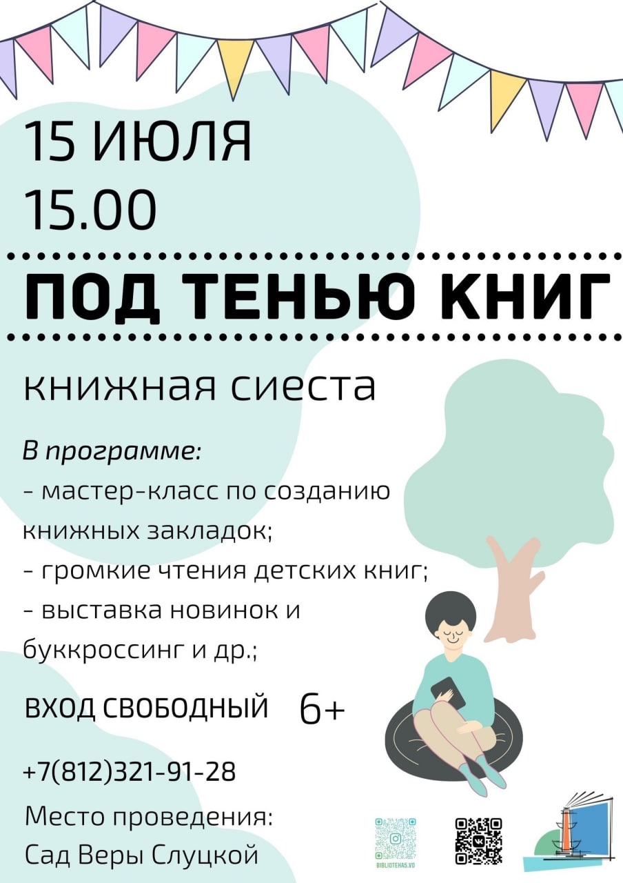 15 июля в 15.00 в Саду Веры Слуцкой стартует книжная сиеста «Под тенью книг». Участников ожидает много интересного для послеобеденного отдыха.