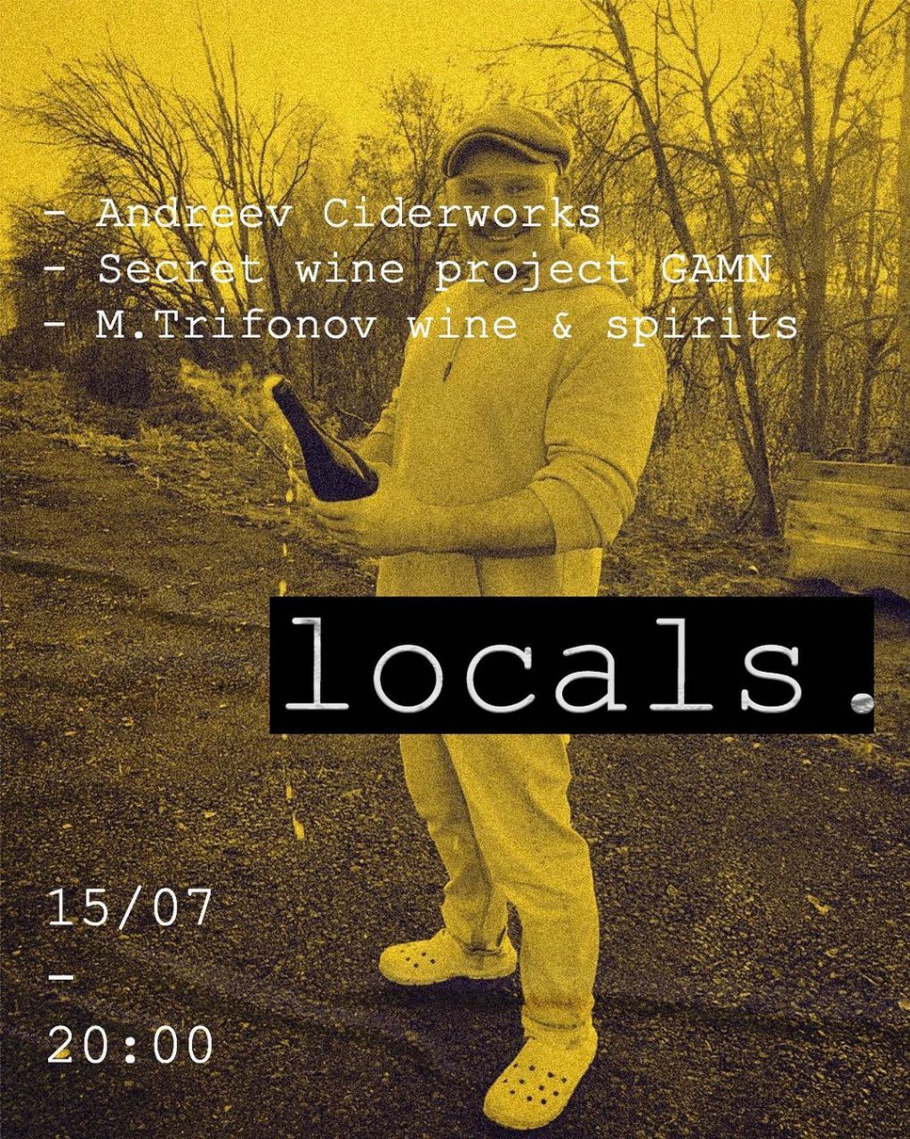 Гостей ожидают малотиражные напитки ручной работы от настоящих фанатов своего дела: 5 сидров от Andreev Ciderworks, 3 вина от секретного винного проекта GAMN, дистиллят из хурмы от главного гаражиста ЛО Михаила Трифонова.