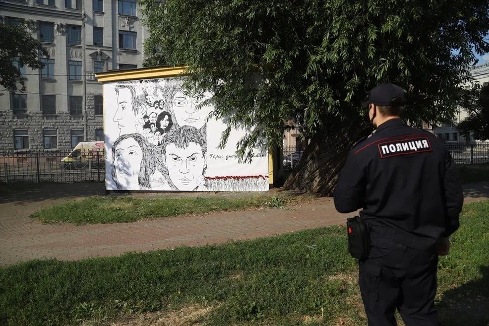 На трансформаторной будке в Пушкарском саду, где ранее был закрашен стрит-арт с Алексеем Навальным, неизвестные повесили баннер с портретами Станислава Маркелова, Анны Политковской, Бориса Немцова, Анастасии Бабуровой и Натальи Эстемировой.