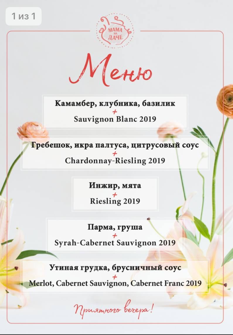 В стоимость включено: 5 сортов вин + 5 закусок от бренд-шефа сети ресторанов «Мама на Даче» Ярослава Булатова