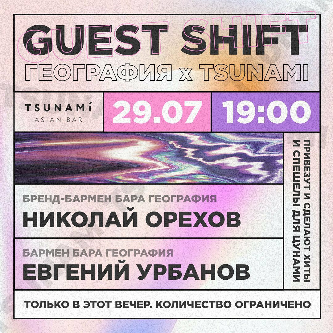 Завтра за баром в Tsunami готовят специальные коктейли резиденты «Географии» бренд-бармен Николай Орехов и бармен Евгений Урбанов