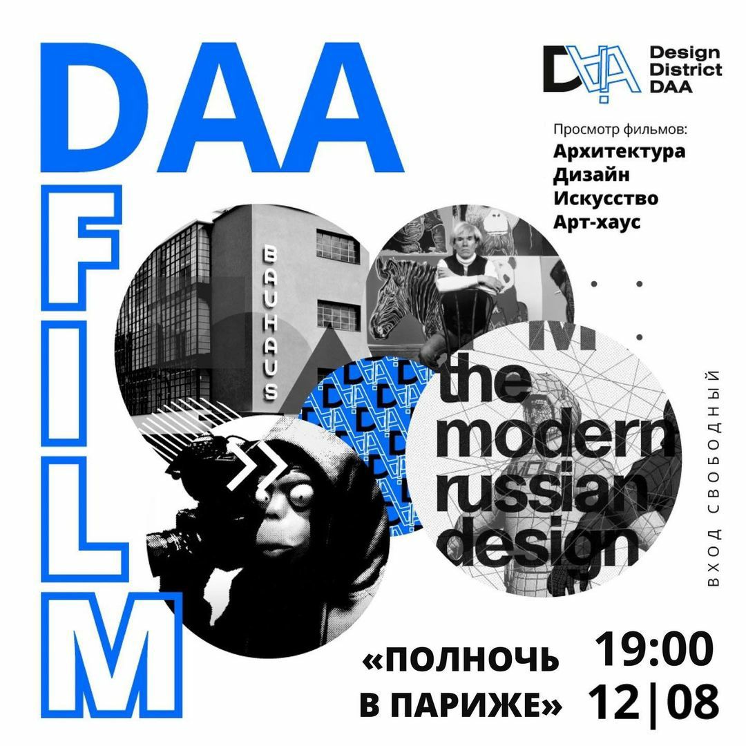 Команда пространства открывает новый проект DAA Film, где каждую неделю будут устраивать кинопросмотр фильмов, связанных с дизайном, искусством и архитектурой.