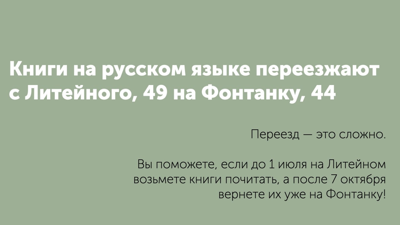Совсем скоро книги на русском языке переезжают с Литейного, 49 на Фонтанку, 44.