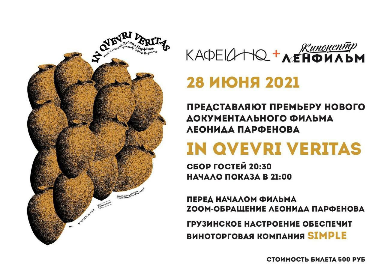 Завтра в киноцентре «Ленфильм» состоится предпремьерный показ фильма «Истина в Квеври»и открытый диалог через ZOOM с Леонидом Парфеновым