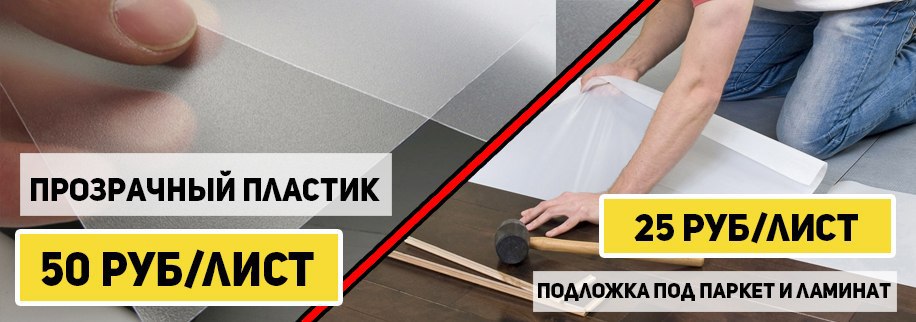 ТОВАР НЕДЕЛИ! Прозрачный пластик - 50 руб/лист. Подложка под паркет и ламинат - 25 руб/лист