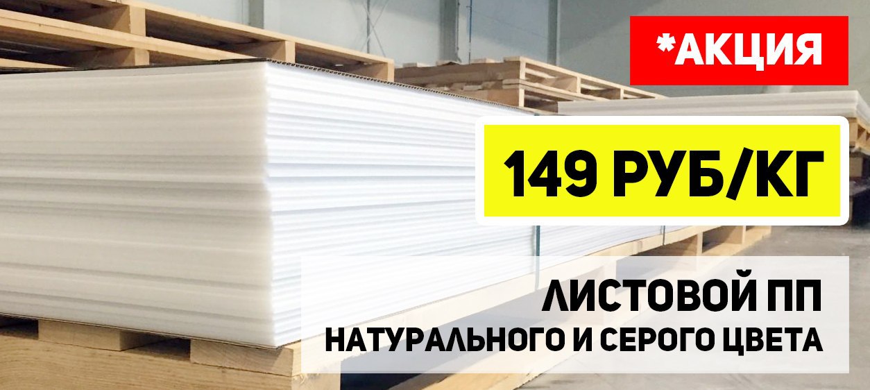 Листовой ПП натурального и серого цвета - 149 руб/кг