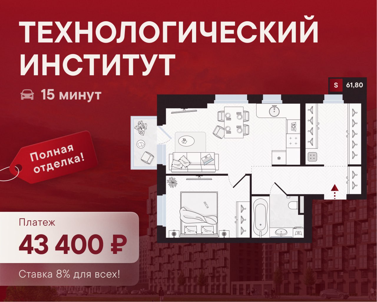 🔥 Ипотека для всех: евродвушка в 15 минутах от «Технологического Института» за 43 400 ₽/мес
