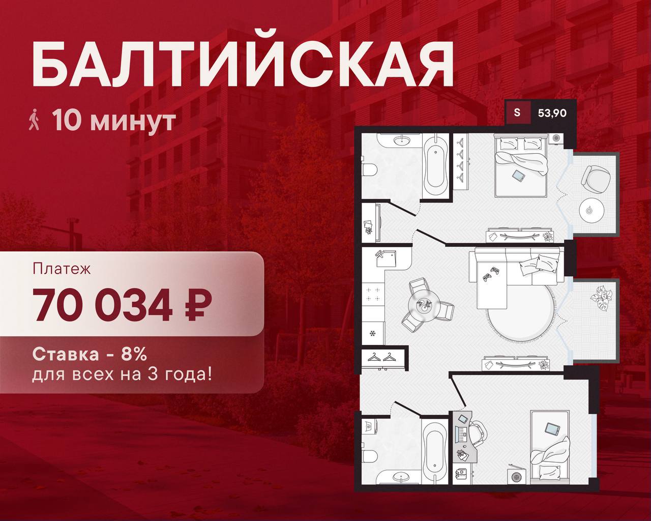 🔴 10 минут пешком до «Балтийской» — комфорт в передвижениях вам обеспечен и не нужно думать о пробках