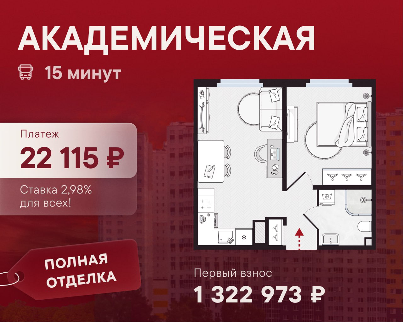 🔴 Ставка 2,98% на 2 года — платеж 22 115 ₽ как за комнату в аренду, но квартира становится вашей и не нужно переплачивать хозяину