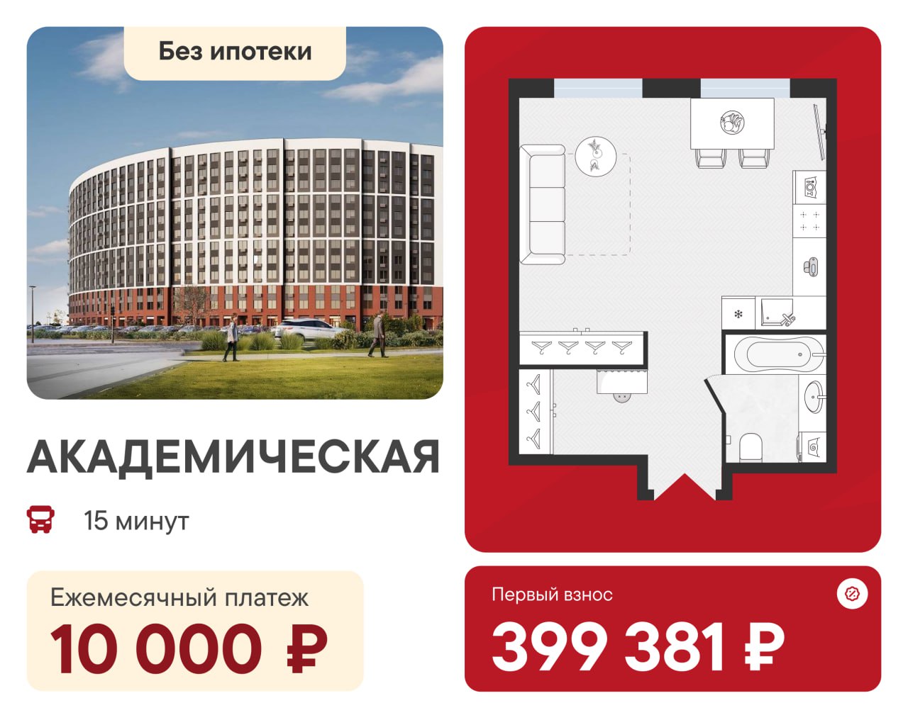 🔴 Первый взнос 399 381 ₽ — доступный вход в свое жилье, не нужно копить миллионы