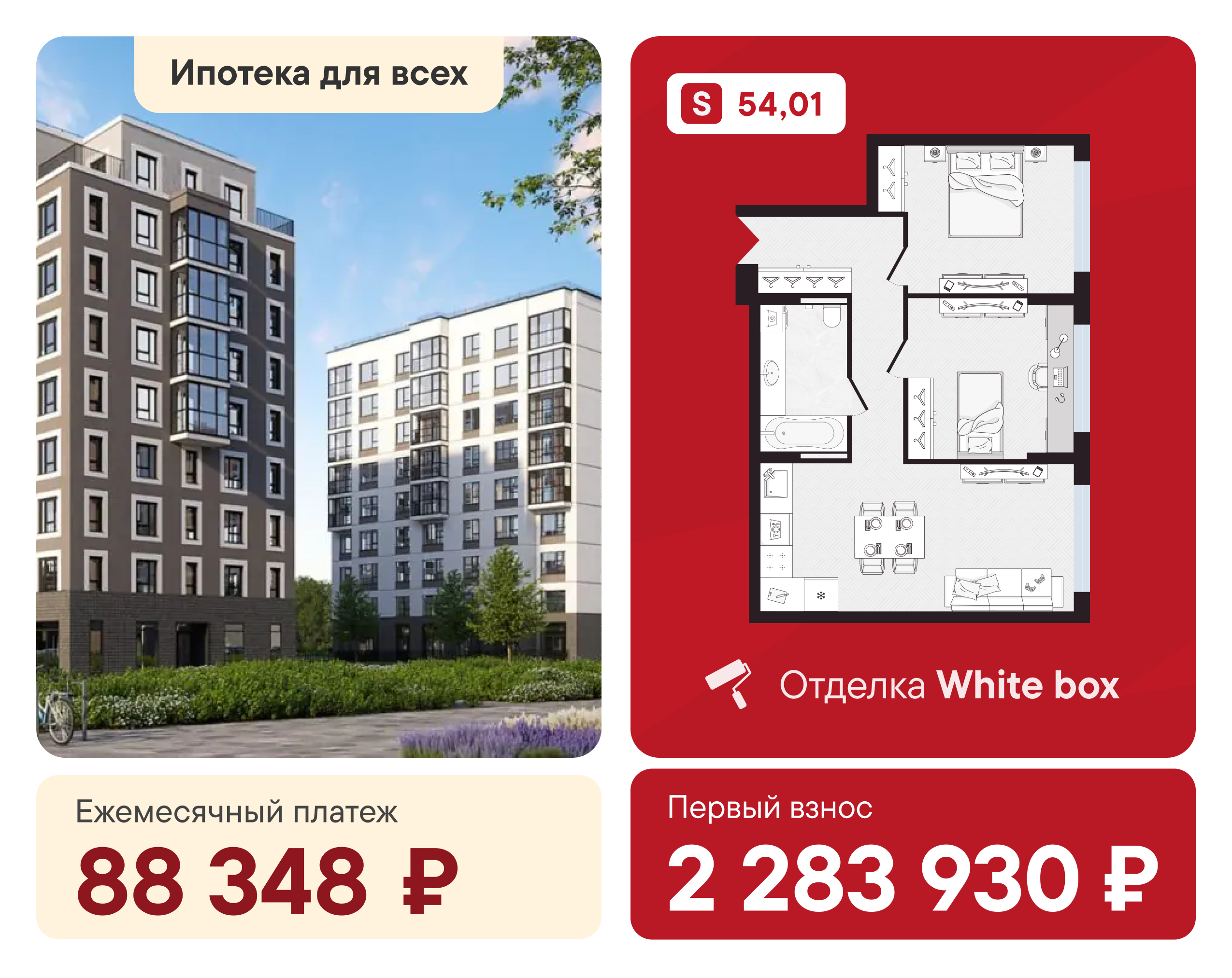 ✅ Ипотека для всех: евротрешка с отделкой White Box за 88 348 ₽/мес