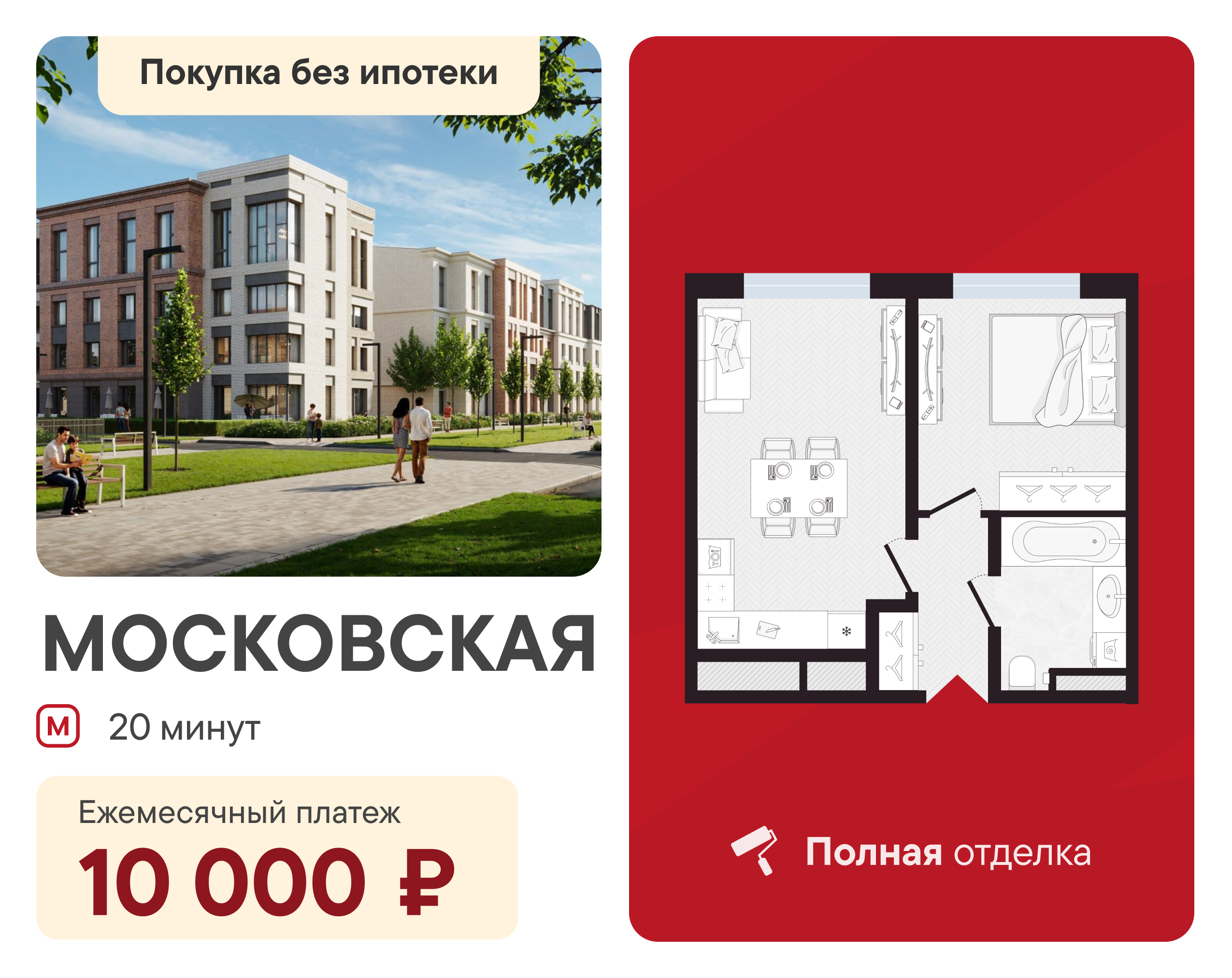 ✅ Евродвушка в 15 минутах от «Московской»: без ипотеки за 10 000 ₽/мес