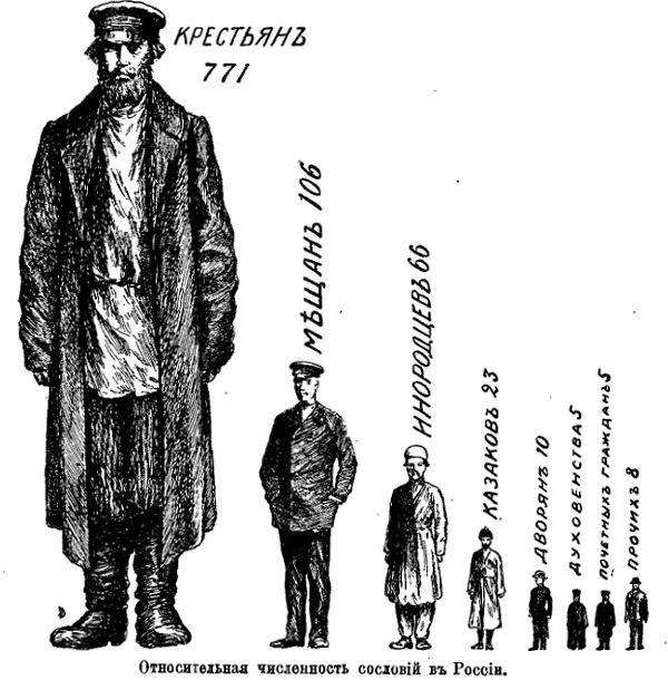 Система сословий в России начала XX века сложилась при Петре I на основе Табели о рангах. Сословия представляли собой социально-правовые группы, каждая из которых отличалась своим юридическим положением, определенными правами и обязанностями в обществе. Наиболее привилегированным, элитарным сословием являлось дворянство. Кроме дворянства в систему входили духовные лица; городские обыватели (разбивались на группы: почетные граждане, купцы, мещане и цеховые); сельские обыватели; а также инородцы и финляндские обыватели. С принадлежностью к той или иной категории подданных имперское законодательство связывало весьма существенные различия в правах и обязанностях. Например, четыре группы природных подданных делились на лиц податного и неподатного состояния. Лица неподатного состояния (дворяне и почётные граждане) пользовались свободой передвижения и получали бессрочные паспорта для проживания на всей территории Российской империи; лица податного состояния (мещане и крестьяне) такими правами не обладали.