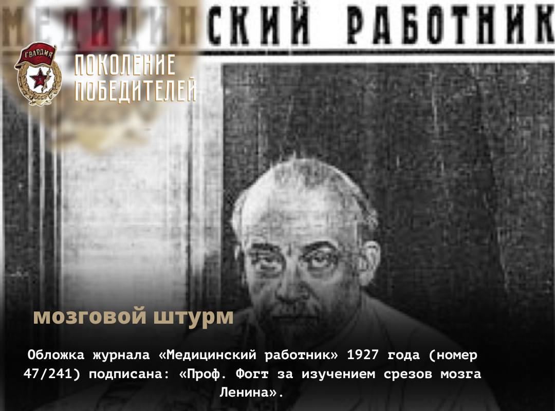 В 1925 году Оскар Фогт снова прибыл в СССР, чтобы доказать гениальность вождя мирового пролетариата, изучив мозг Ленина. Так,в Москве появился институт мозга, который до сих пор функционирует - как часть Научного центра неврологии.
