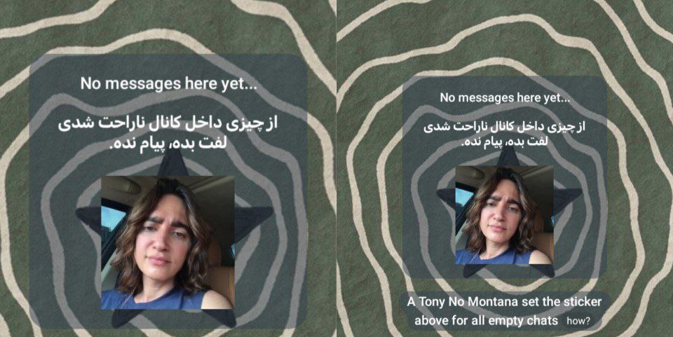 بعد اين صفحه وا میشه و enter title همون no message here yet هست و enter message همون sena a message or tap the greeting below هست و اون پایین هم پک استیکر و عوض میکنید