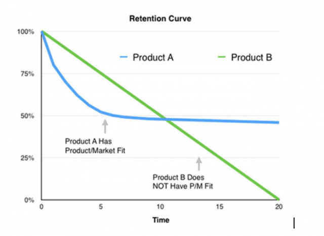 🔷 Автор предлагает смотреть на P/M fit через месячный retention (можно зависеть от категории продукта).