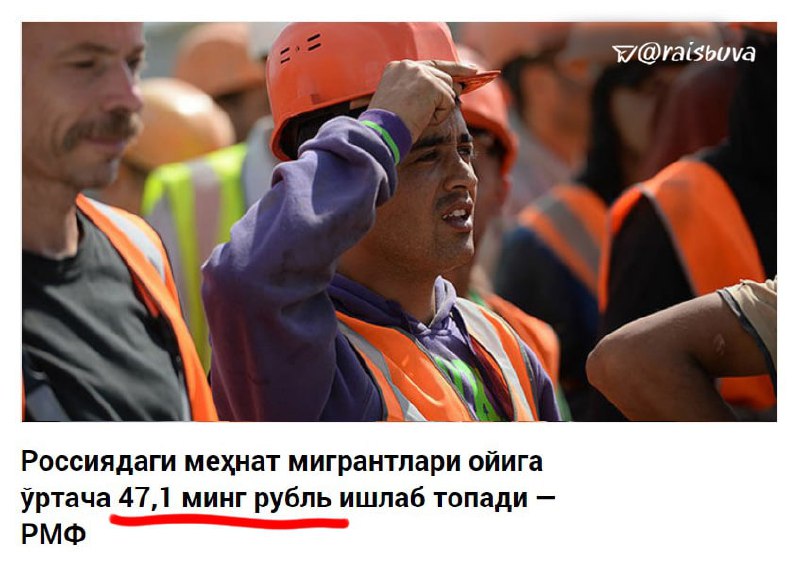 Ҳозирда Россияда ишлаётган мигрантлар бир ойда ўртача 6-7 млн сўм топаётган экан. Бу ўртача рақамлар, албатта бундан кўп топаётганлар ҳам бор, ва афсуски, юқоридаги сумманинг зўрға ярмини топаётганлар ҳам кўп...