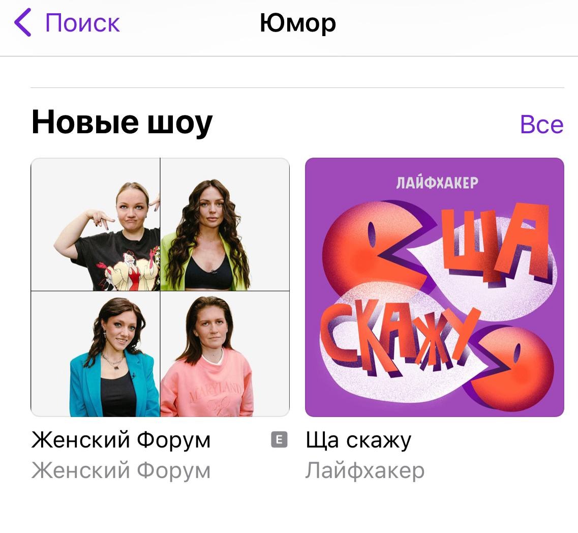 Самый надёжный способ выбрать подходящее шоу по тематике — это заходить в соответствующие плейлисты. Если вам интересен, скажем, юмор, то вы найдёте для себя весёлые подкасты в специально отведённом для них месте. Единственная загвоздка — иногда и в тематических подборках можно потеряться. Даже несмотря на наличие чартов, которые показывают самые популярные шоу в выбранной категории. К тому же некоторые шоу имеют гибридный характер, а потому могут относиться как к развлекательным, так и к образовательным. Таким является и наш эдьютейнмент-подкаст «Ща скажу».
