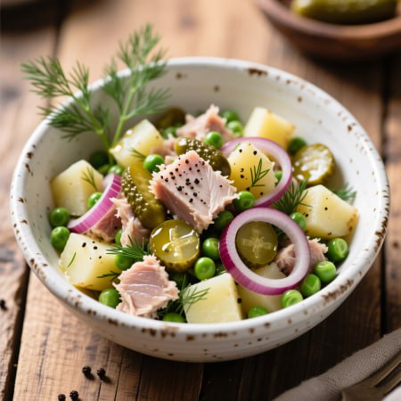 🥗 Салат с тунцом, картошкой и солёным огурцом💪