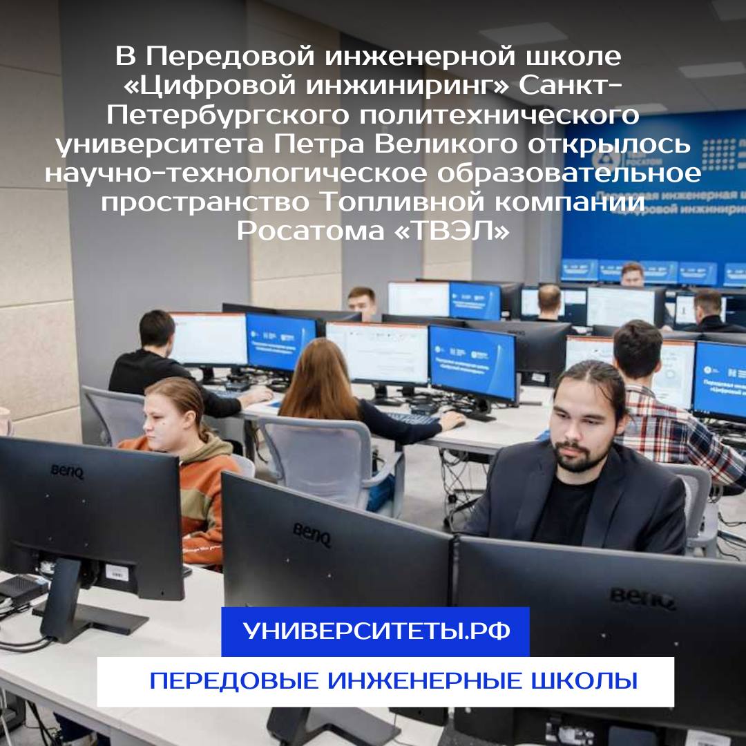 В Передовой инженерной школе «Цифровой инжиниринг» Санкт-Петербургского политехнического университета Петра Великого открылось научно-технологическое образовательное пространство Топливной компании Росатома «ТВЭЛ»