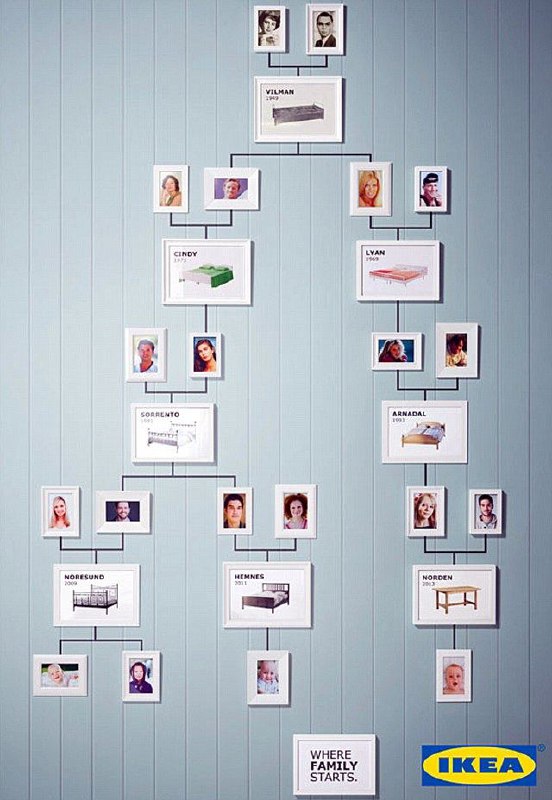 По данным The New Yorker, около 10% европейцев были зачаты на кроватях IKEA. Компания использовала этот факт в маркетинговых целях, представив рекламу своих кроватей на дополненном генеалогическом древе.