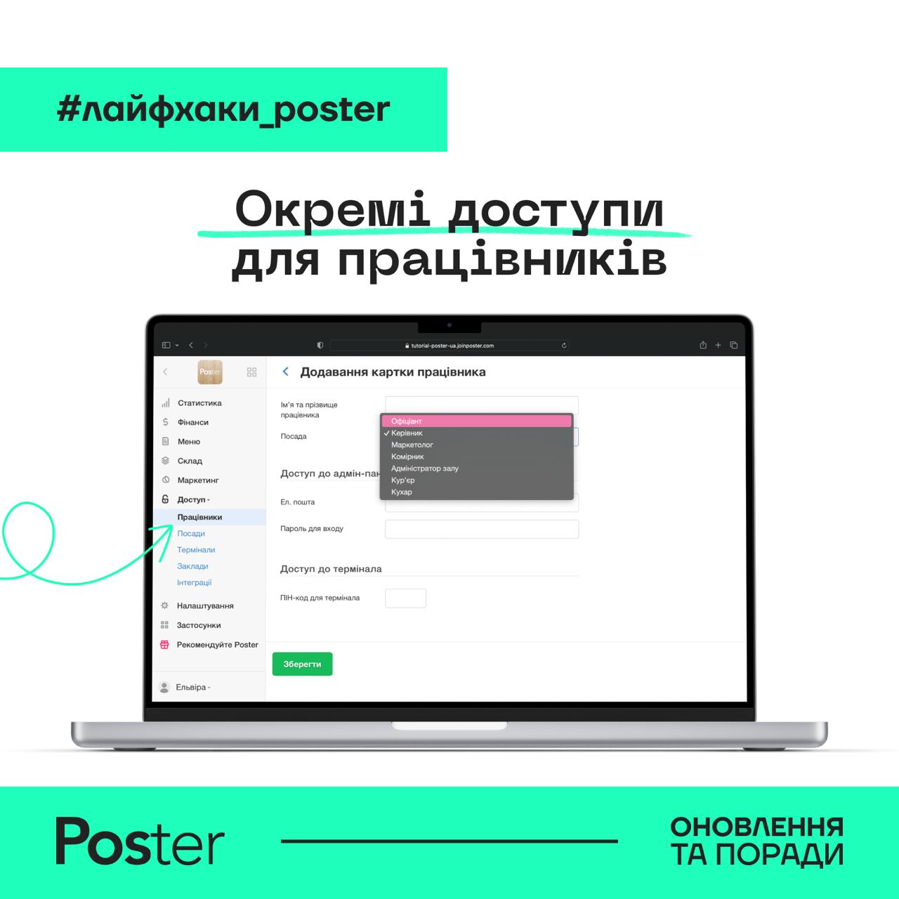 👩🍳 Створюйте картки працівників та розділяйте доступи