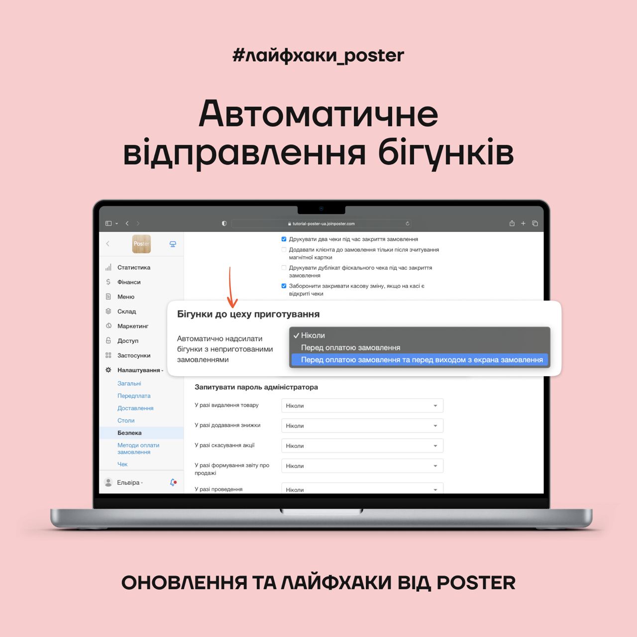 Щоб касирам не потрібно було кожного разу натискати на кнопку Відправити бігунок на касі, включіть автоматичне відправлення бігунків. Так вони не забудуть відправити його на кухню, а ваші гості точно отримають своє замовлення вчасно.