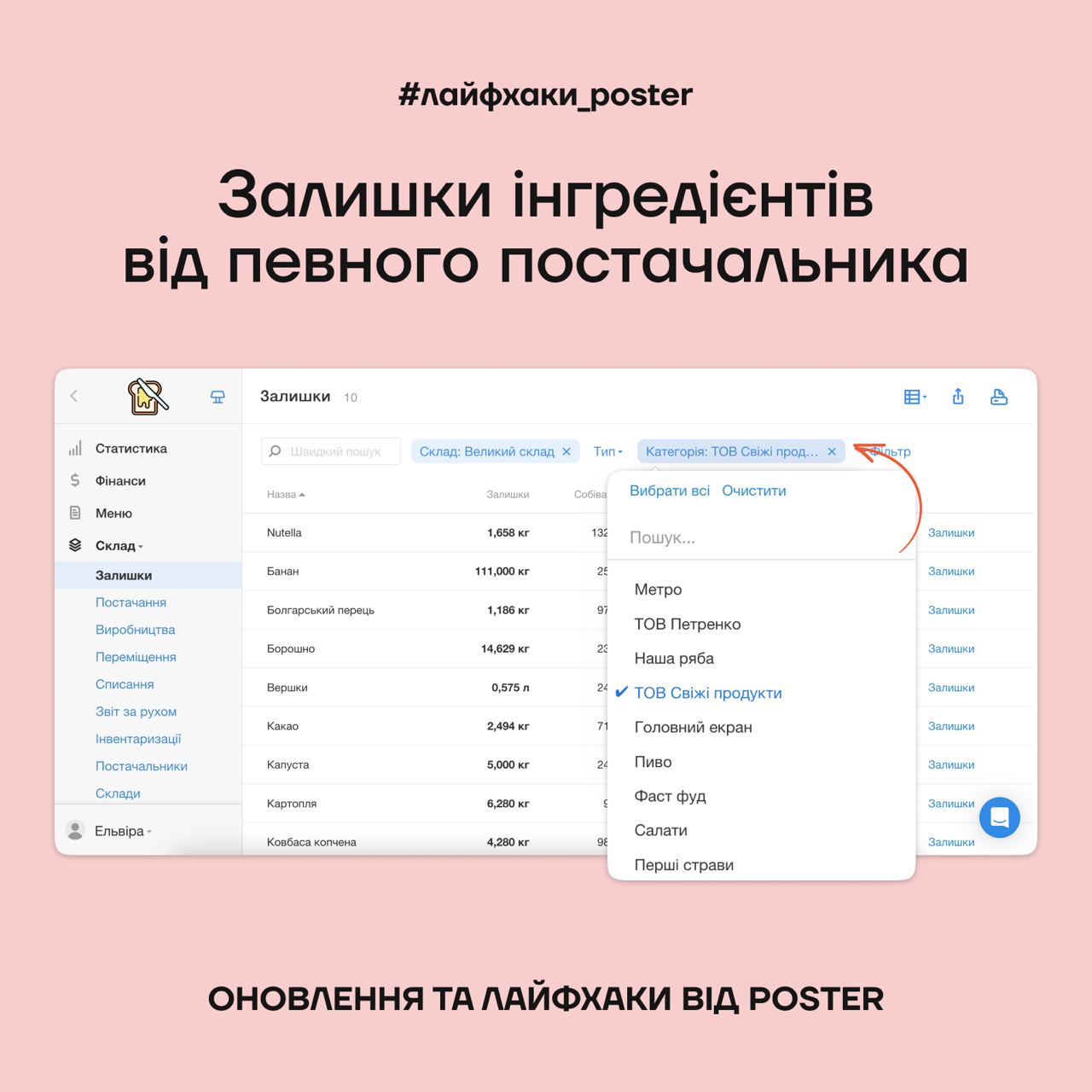 🥕 Як переглядати залишки інгредієнтів по постачальниках